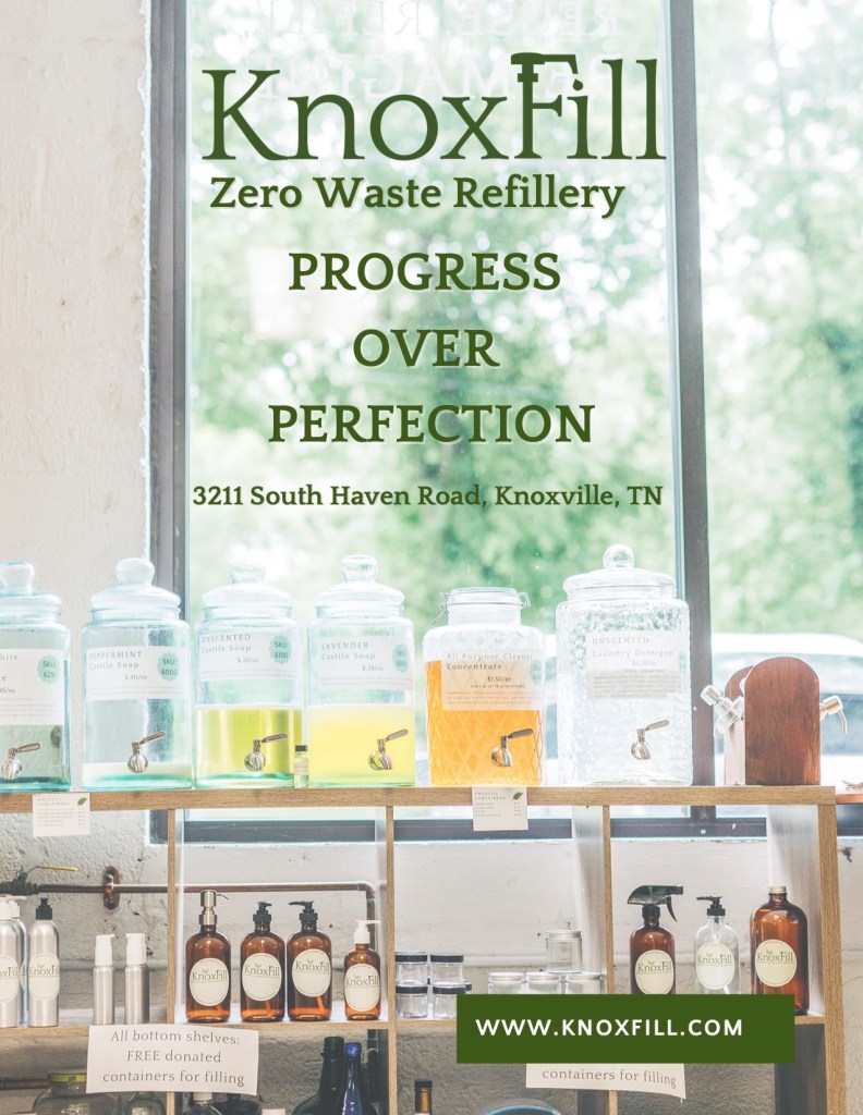KnoxFill is a locally owned zero-waste refillery located at 3211 South Haven Road in South Knoxville. Dr. Michaela Barnett started KnoxFill in her home in 2021, and in April of 2023, she opened her eco-friendly storefront, offering personal care items, home goods, spices and teas, and bulk foods, many of which are from local makers and suppliers. KnoxFill even has in-store speciality recycling. Shop online or in store today!